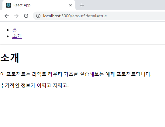 /about?detail=true 경로에 들어가면 about 컴포넌트에서 구현해준 추가적인 정보가 나타난다.
